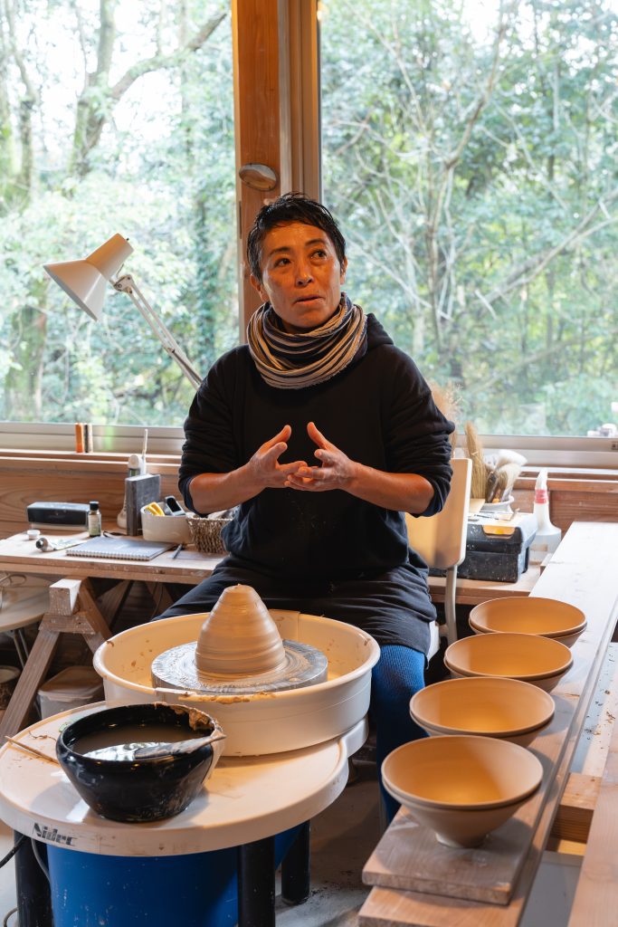 對花子而言,陶藝是生活的延伸。她將家族傳承的工藝技巧,轉化為現代生活中的器皿。每一件作品都承載著唐津泥土的氣息,卻能在現代城市的餐桌上,展現出最俐落優雅的姿態。