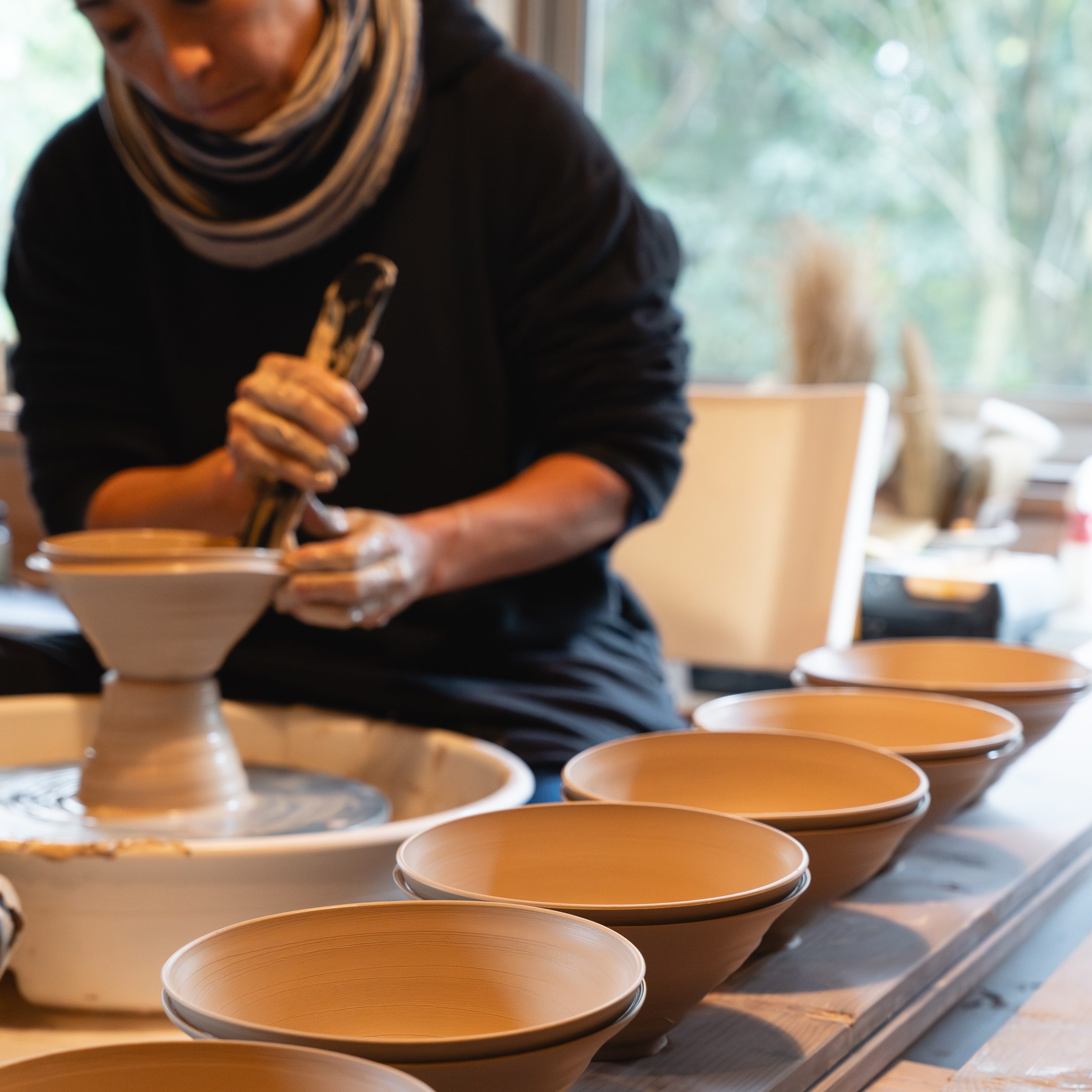 目前,她將生活與創作重心分配於日本唐津市與美國緬因州,這兩個截然不同的環境賦予了她豐富的創作養分:日本的創作季充滿高強度的生產節奏與職人堅持,而緬因州的自然風光則為她提供了放鬆與沉澱的空間,這些平衡都反映在她作品那富有生命力且不落俗套的形體中。